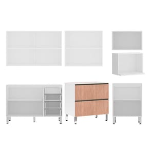 Composta por 7 peças cuidadosamente pensadas para sua organização. Conta com acessórios requintados como puxadores tipo gola, corrediças metálicas telescópicas para abertura total das gavetas e pés em Poliestireno. Os módulos são montados individualmente e permitem a instalação da forma que melhor se adeque ao seu espaço.