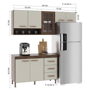 QUANTIDADE DE GAVETAS: 3 | LARGURA (CM): 190 | QUANTIDADE DE PORTAS: 7 | MATERIAL: MDP | ALTURA (CM): 204,5 | PROFUNDIDADE (CM): 53 | TAMPO DO BALCÃO INCLUSO: SIM | QUANTIDADE DE PEÇAS: 3 | Requer Montagem: Sim | Inclui manual de montagem: Sim | Materiais do Corpo: MDP | Tipo de móveis de cozinha: Cozinha Completa | Marca: Fidelitá Móveis | Estilo: Moderno | Condição do item: Novo | Modelo: Lisboa | Cor: 765-NOCE/OFF/NOCE