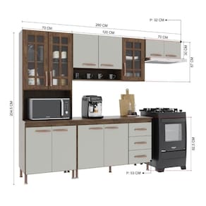 QUANTIDADE DE GAVETAS: 3 | LARGURA (CM): 260 | QUANTIDADE DE PORTAS: 11 | MATERIAL: MDP | ALTURA (CM): 204,5 | PROFUNDIDADE (CM): 53 | TAMPO DO BALCÃO INCLUSO: Sim | QUANTIDADE DE PEÇAS: 4 | Tipo de móveis de cozinha: Completa | Requer Montagem: Sim | Materiais do Corpo: MDP | Inclui manual de montagem: Sim | Marca: Fidelitá Móveis | Estilo: Moderno | Condição do item: Novo | Modelo: Lisboa | Cor: Noce/Off-White