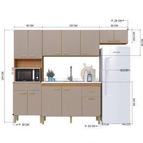 PROFUNDIDADE (CM): 53 | ALTURA (CM): 205 | MATERIAL: MDP | QUANTIDADE DE PEÇAS: 4 | QUANTIDADE DE PORTAS: 12 | Tipo de móveis de cozinha: Armário/Balcão | Cor: Freijó/Camurça | LARGURA (CM): 240 | Inclui tampo: Não | Profundidade do balcão: 53 | Inclui manual de montagem: Sim | Requer montagem: Sim | Marca: Fidelitá Móveis | Estilo: Moderno | Condição do item: Novo | Modelo: Mariana | TAMPO DO BALCÃO INCLUSO: NÃO
