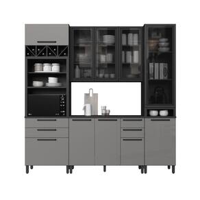 Materiais do corpo: MDP | Altura (cm): 240 | Largura (cm): 240 | Quantidade de portas: 10 | Conteúdo da embalagem: Torre Quente 70cm, Aéreo 120cm, Paneleiro Simples 50cm, Balcão 120cm e Manual de Montagem. | Profundidade (cm): 53 | Tipo de móveis de cozinha: Cozinha Compacta | Inclui manual de montagem: Sim | Requer montagem: Sim | Marca: Fidelitá Móveis | Estilo: Moderno | Condição do item: Novo | Modelo: Mônaco | Cor: Chumbo/Titânio