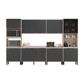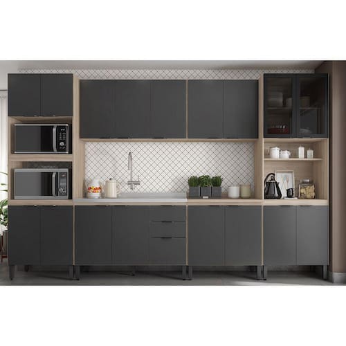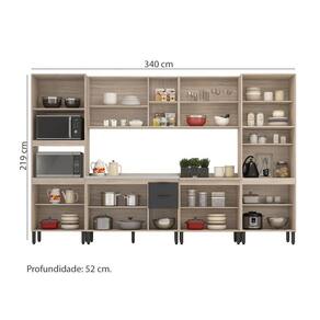 CaracterísticasEstrutura em MDP.Pintura em acabamento UV.18 Portas sendo 02 de Vidro02 Gavetas com corrediças telescópicas.Espaço para forno micro-ondas e forno elétricoPrateleiras com amplo espaço.Nichos decorativos*Não acompanha tampo nem cuba.OBJETOS DECORATIVOS NÃO ACOMPANHAM OS PRODUTOSLimpar o produto utilizando apenas pano umedecido com água, nunca utilizar produtos abrasivos ou esponjas de aço.Acompanha manual e todos os acessórios para montagem.Recomendamos que a montagem seja feita por um profissional qualificado.Garantia de 03 meses para eventuais defeitos de fabricação.DimensõesAltura: 219 cmLargura: 340 cmProfundidade 52 cmItens Inclusos01 Armário Aéreo (94331).01 Armário Aéreo (94241).01 Paneleiro (94551).01 Paneleiro Duplo (94421).01 Balcão Cozinha 120 cm (93231).01 Balcão 80 cm (93221).Peso Total: 235 Kg 08 volumes.ATENÇÃO OBSERVAÇÕES IMPORTANTESAs imagens são meramente ilustrativas, não serão enviados objetos de decoração, eletrônicos e demais itens que não estejam especificados nos itens inclusos. É INDISPENSÁVEL que seja feita a conferência do produto no ato da entrega e caso haja alguma divergência, seja feito o contato imediato com a loja e notificação no canhoto. CONSTATANDO DEFEITO NO ATO DA ENTREGA O PRODUTO NÃO DEVERÁ SER MONTADO ATÉ TRATATIVA COM A LOJA. NÃO SERÁ EFETUADA A TROCA DO PRODUTO APÓS A MONTAGEM TER SIDO EFETUADA. A montagem é de total responsabilidade do cliente e defeito na montagem serão tratadas como assistências. OS PROCESSOS DE PENDÊNCIAS SERÃO TRATADOS MEDIANTE A FOTOS PARA ANALISE E CONFERÊNCIA DA INFORMAÇÃO. As cores do produto podem variar de acordo com o seu monitor, a iluminação do ambiente em que você está e até mesmo a sua percepção visual. Não nos responsabilizamos, no ato da entrega, por subir escadas e elevadores. Eventuais despesas são de responsabilidade do cliente. Dúvidas serão tratadas via protocolo.