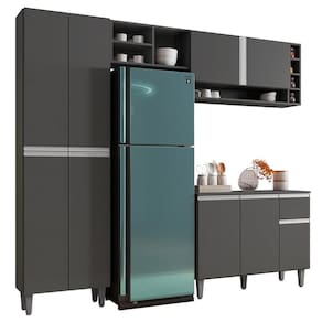 Ter as coisas no devido lugar gera uma sensação de bem-estar, por isso, a Cozinha Modulada Completa 230cm Com Balcão e Armário Aéreo Vanessa Cinza Escuro, da AJL Móveis vai tornar a sua casa muito mais aconchegante, vem conhecer os detalhes!
