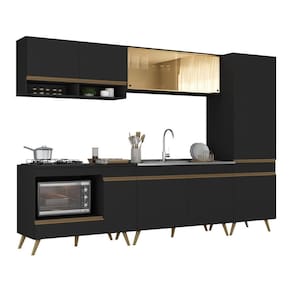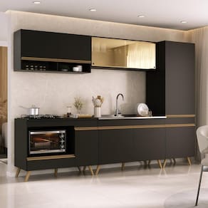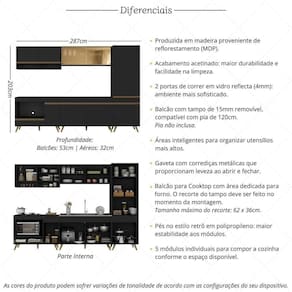 Design sofisticado e funcionalidade inteligente para sua cozinha, com visual de planejada. Produzido em MDP (madeira de reflorestamento) com acabamento acetinado (aprox. 20% brilho), garantindo durabilidade e resistência. São 5 módulos individuais que otimizam cada canto do ambiente.
