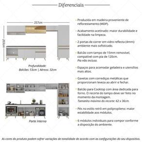 Balcão com tampo recortável (15mm) compatível com cooktop de 4 ou 5 bocas (até 62 x 36 cm).
