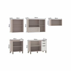 Ambiente Composto por: - 1 Armário Aéreo 120cm 3 Portas e Nichos Stylo Luciane Móveis 85 x 120 x 33 -A x L x P - cm- - 1 Armário Aéreo 80cm 2 Portas 1 Prateleira Stylo Luciane Móveis 85 x 80 x 33 -A x L x P - cm- - 1 Armário Aéreo 80cm 2 Portas Stylo Luciane Móveis 42,5 x 80 x 33 -A x L x P - cm- - 1 Balcão 80cm 2 Portas com Tampo Stylo Luciane Móveis 95,5 x 80 x 53 -A x L x P - cm- - 1 Balcão para Pia 120cm 2 Portas e 3 Gavetas sem Tampo Stylo Luciane Móveis 87 x 120 x 51,5 -A x L x P - cm-