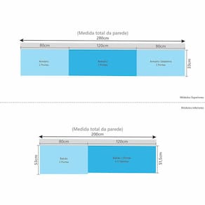 Superior: 85 x 280 x 33 (Alt x Larg x Prof - cm)