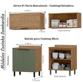 A Versão 5 Peças da Cozinha Completa Modulada de Canto Lombardia é perfeita, possui 9 portas e 3 Gavetas (sendo 1 Interna) oferece um amplo espaço para deixar a sua cozinha muito organizada e com muito estilo.