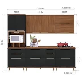 Transforme sua cozinha em um espaço moderno e funcional com nossa linha Madri, fabricada em MDP 15mm (com sua base e tampos em MDP 25mm), puxadores em alumínio, pés com regulagem ela foi projetada para oferecer durabilidade, elegância e funcionalidade. Ideal para quem busca um ambiente moderno e prático, nossa cozinha combina design sofisticado com materiais de alta qualidade. Acabamento da Prateleira: Pintura Escala de Brilho da Prateleira: Fosco Acabamento da Gaveta: Pintura Escala de Brilho da Gaveta: Fosco Material do Puxador da Gaveta: Alumínio Acabamento da Porta: Pintura Escala de Brilho da Porta: Fosco Material do Puxador da Porta: Alumínio Acompanha Tampo: Sim Altura dos Pés: 14 cm Ambiente Principal: Cozinha Complexidade da Montagem: Alta: deve ser montado por um montador especializado Cor: freijo/cinza Cor do Produto: Freijó/Cinza Escala de Brilho: Fosco Espessura do Tampo: 25 mm Gaveta com Chave: Não Itens Inclusos: 1 Torre Quente 1 Forno 70cm | 1 Armário 120cm | 1 Balcão 120cm com Tampo | 2 Armários 80cm | 1 Balcão 80cm | Kit Ferragens | Manual de Montagem Linha ou Coleção: Madri Manual de Montagem e Instalação: https://product-hub-prd.madeiramadeira.com.br/911960/documents/5f1deef3-59ce-4f97-b53d-1f6d3bcc93d1199870574617171770388958.pdf Material da Dobradiça/Corrediça da Porta: Metálica Material da Gaveta: MDP Material da Porta: MDP Material da Prateleira: MDP Material do Tampo: MDP Material dos Pés: Plástico Medida de cada item (A x L x P): Torre Quente: 226x70x53,5cm | Armário 120cm: 77x120x32,5cm | Balcão 120cm com Tampo: 93x120x53,5cm | | Armário 80cm: 38,5x80x32,5cm | Armário 80cm: 38,5x80x32,5cm | Balcão 80cm: 93x80x53,5cm modular: Sim Necessita Montagem: Sim O Balcão Acompanha Pia: Não Origem do Produto: Nacional Pés Reguláveis: Sim Peso: 225,4 kg Peso Máximo por Gaveta: 3 kg Peso Máximo por Prateleira: 5 kg Possui Pés: 13 Possui Portas: Sim Possui Prateleiras: Sim Possui recorte para Cooktop: Não Possui Rodízio: Não Possui Vidro: Não Recomendações de Uso, Manutenção e Limpeza: Não limpar com álcool ou qualquer outro produto quimico. Utilize somente pano seco ou levemente umedecido. Sapatas Niveladoras: Não Sistema de Montagem: Cavilhas de madeira e parafusos tipo "fixer" especialmente desenvolvido para madeira. Tamanho Indicado da Pia: 120x53cm Tipo de Corrediça da Gaveta: Telescópica Tipo de Dobradiça da Porta: Soft close Tipo de Puxador da Gaveta: Externo Tipo de Puxador da Porta: Externo
