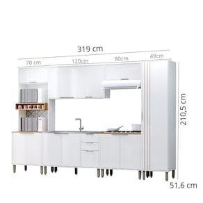 - Cozinha Montada: Altura: 210,5 cm | Comprimento: 319 cm | Profundidade: 51,6 cm