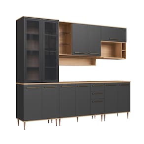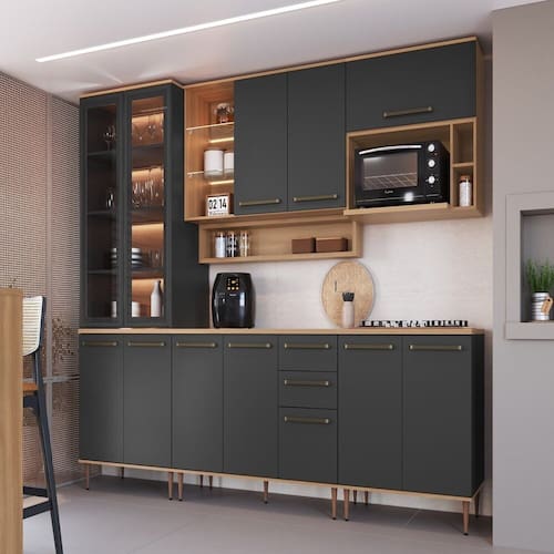 Cozinha modulada Isabelle possui surpreendente espaço interno, design e cores sofisticadas que combinam perfeitamente com qualquer decoração. As gavetas possuem corrediças telescópicas, as portas basculantes contam com dobradiças com amortecimento e pistão à gás para o fechamento suave, possui duas portas com vidro fumê e fechamento com pulsador magnético. Possui prateleiras internas. Com puxadores em alumínio com ponteira ABS e pés modernos com regulagem de altura. Esses itens de qualidade superior conferem durabilidade e maior vida útil ao móvel. Composta de chapa MDP 1,5cm e 2,5cm. Os módulos são avulsos (cada peça é independente uma da outra) e podem ser arranjados de diferentes formas, o que permite que, nesse caso, você monte uma cozinha do seu jeito.