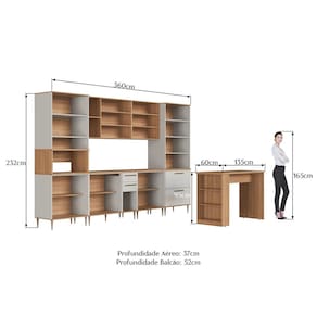 Medida de cada item (A x L x P): IS1801 – Torre 0,80m – 231,5x79,9x52cm IS1600 – Aéreo 1,20m – 231,5x79,9x52cm IS1500 – Balcão 1,20m – 95x119,8x52cm TB1225 – Tampo – 25x1,20x52cm IS1601 – Aéreo 0,80m – 75,5x79x36,8cm IS1501 – Balcão 0,80m – 95x80x52cm IS1852 – Cristaleira – 231,5x80x52cm BA0001 – Bancada – 95x135x60cm