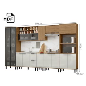 Medida Cozinha Montada: Altura: 230 cm | Comprimento:390cm | Profundidade: 51,6 cm