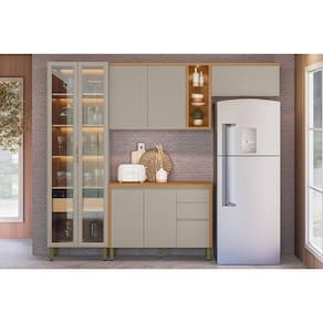 Cozinha Modulada Completa Allure 4 Peças (2Aéreos+1Balcão+1Cristaleira) CP11 Jequitiba/Gris Fosco - Linea Brasil