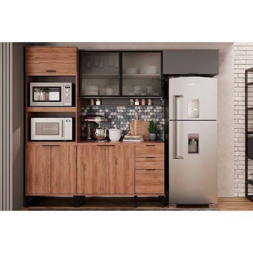 Cozinha Completa Alpha 4 Peças (2Aéreos+1Balcão+1TorreQuente) C4P204 Freijo/Cinza - Carraro