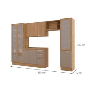 Cozinha Completa Botanic 6 Peças (2Aéreos+1Balcão+1Cristaleira+1Paneleiro+1Complemento) M661 Nogueira/Verde Oliva - Kappesberg