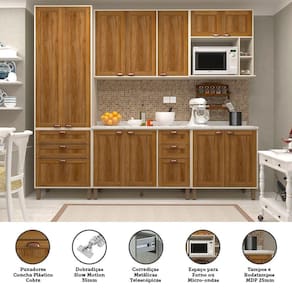 Ambiente composto por: - 1 Balcão de Pia sem Tampo para Cozinha 120cm 2 Portas de Abrir, 3 Gavetas Sofia Luciane Móveis 87 x 120 x 51,5 -Altura x Largura x Profundidade - cm- - 1 Balcão de Cozinha com Tampo 80 cm 2 Portas de Abrir 1 Prateleira Sofia Luciane Móveis 89,5 x 80 x 53 -Altura x Largura x Profundidade - cm- - 1 Armário Aéreo de Cozinha 80cm 2 Portas 4 Prateleiras e Nicho Microondas Sofia Luciane Móveis 85 x 80 x 42 -Altura x Largura x Profundidade - cm- - 1 Armário Aéreo de Cozinha 120 cm 3 Portas 5 Prateleiras Sofia Luciane Móveis 85 x 120 x 33 -Altura x Largura x Profundidade - cm- - 1 Paneleiro de Cozinha 70 cm 2 Portas 3 Gavetas Sofia Luciane Móveis 236 x 70 x 51,5 -Altura x Largura x Profundidade - cm- - 1 Tampo para Balcão 120cm MDP Linea Luciane Móveis 2,5 x 120 x 53 -Altura x Largura x Profundidade - cm-