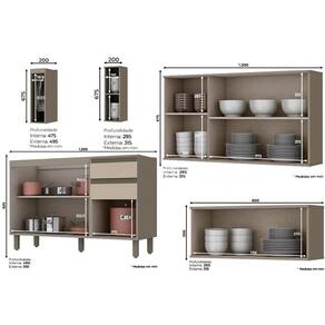 Cozinha Completa Connect 19 Peças (5 Armários + 5 Balcões + 1 Paneleiro + 8 Complementos) Duna/Cristal - Henn