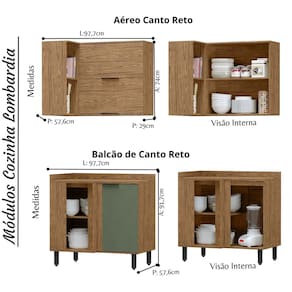 A Versão 7 Peças da Cozinha Completa Modulada de Canto Lombardia é perfeita, possui 13 portas e 3 Gavetas ( sendo 1 Interna) oferece um amplo espaço para deixar a sua cozinha muito organizada e com muito estilo.