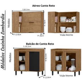 A Versão 7 Peças da Cozinha Completa Modulada de Canto Lombardia é perfeita, possui 13 portas e 3 Gavetas ( sendo 1 Interna) oferece um amplo espaço para deixar a sua cozinha muito organizada e com muito estilo.