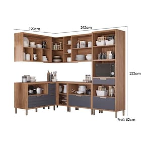 - Balcão de Cozinha c/ Tampo Eloise Nicho de Canto c/ 1 Porta 92cm Freijo/Titanium - MGM - 1 unidades