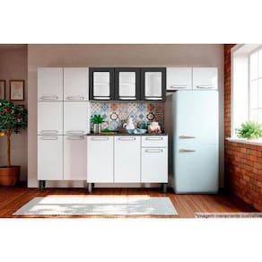 Cozinha Completa Evidence 4 Peças (2 Armários + 1 Balcão + 1 Paneleiro) C4P50 Branco/Preto - Bertolini