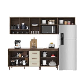 Com módulos avulsos, cada peça é independente, permitindo diferentes composições para melhor aproveitamento do espaço. Seu interior é bem distribuído, com prateleiras e divisórias que auxiliam na organização de utensílios e mantimentos.