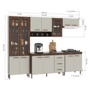 Profundidade: 53cm (balcões) | 32cm (aéreos)
