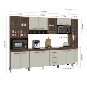 Profundidade: 53cm (balcões) | 32cm (aéreos)