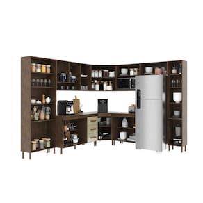 Com módulos avulsos, cada peça é independente, permitindo diferentes composições para melhor aproveitamento do espaço. Seu interior é bem distribuído, com prateleiras e divisórias que auxiliam na organização de utensílios e mantimentos.