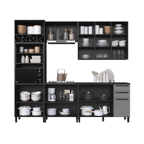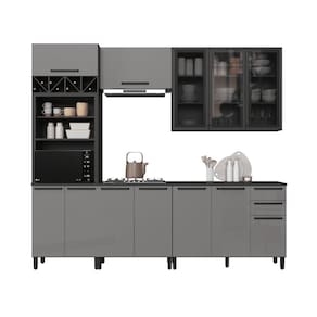 Cozinha Modulada Completa Fidelitá Mônaco 5 Peças 270cm 12 Portas 2 Gavetas Com Tampo Cinza/Titânio