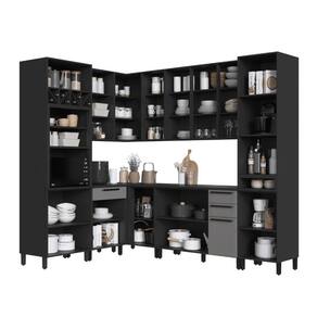 MATERIAL: MDP | Tipo de móveis de cozinha: Cozinha Completa | TAMPO DO BALCÃO INCLUSO: SIM | QUANTIDADE DE GAVETAS: 3 | QUANTIDADE DE PORTAS: 15 | PROFUNDIDADE (CM): 53 | ALTURA (CM): 240 | QUANTIDADE DE PEÇAS: 8 | LARGURA (CM): 449 | Inclui tampo: Sim | Materiais do corpo: MDP | Inclui manual de montagem: Sim | Cor: Chumbo/Titânio