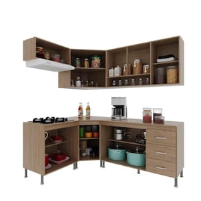 Os módulos são avulsos (cada peça é independente uma da outra) possibilitando assim vários arranjos, o espaço interno, que vem com prateleiras e divisórias, é ótimo para organização dos utensílios e mantimentos. Fabricados em material resistente, como chapas de MDP 15mm, corrediças telescópicas e dobradiças metálicas. Com puxadores cromados em ABS, pés em plástico com regulagem de altura.
