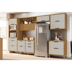 Cozinha Completa Imperatriz 6 Peças (3Aéreos+2Balcões+1TorreQuente) C6P84 Freijo/Off White - Nesher
