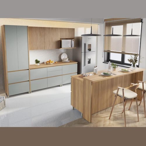 A Cozinha Rainha Gourmet da Nesher com detalhe ripado é a escolha perfeita para quem busca uma cozinha prática e cheia de estilo. Composta por 8 peças, incluindo paneleiro, 4 balcões, 2 armários e um painel ilha com detalhes ripados, ela oferece um espaço completo e funcional. Sua estrutura é feita 100% em MDF, garantindo resistência e durabilidade. A combinação das cores nature e verde traz uma atmosfera agradável e moderna para o ambiente. Com amplo espaço de armazenamento, gavetas e prateleiras bem distribuídas, essa cozinha permite que você organize seus utensílios e mantimentos de forma prática. Renove sua cozinha com a Rainha Gourmet da Nesher e desfrute de momentos deliciosos com um toque de estilo e sofisticado.