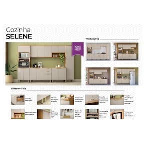 - Balcão de Cozinha Selene c/ Tampo c/ 2 pta e 3 Gav 120cm Jequitiba/Off White Fosco - Linea Brasil - 1 unidades