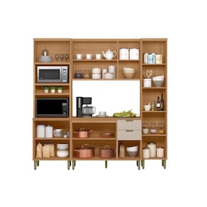 Cozinha Completa Selene 4 Peças (2Aéreos+1Paneleiro+1TorreQuente) CP09 Jequitiba/Off White Fosco - Linea Brasil