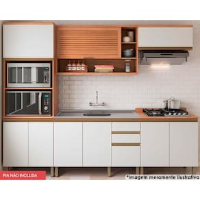 Cozinha Modulada Completa Thela Macadâmia 5 Peças (2Aéreos+2Balcões+1Paneleiro) CZC25 Freijo/Branco - Telasul - Blush