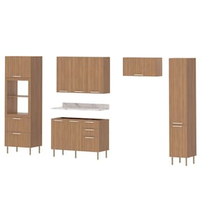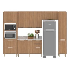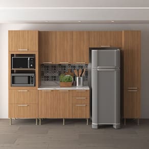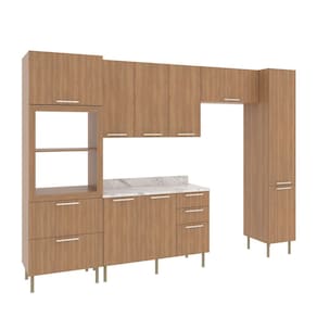 CARACTERÍSTICAS TÉCNICAS: - Produzido 100% em MDP ecologicamente correto; - Acabamento BP na Cor Freijó com Bordas em PVC; - Portas com Dobradiças Metálicas com Amortecedor Slow Motion; - Tampo em MDP com Acabamento em Pintura UV na Cor Mármore Branco; - Puxadores em Alumínio na Cor Dourado; - Gavetas com Corrediças Telescópicas; - Pés em PVC Regulável de 17 cm com detalhe Cromado.MÓDULOS INCLUSO NA COZINHA: 1 x CZ3100: Balcão Pia (AxLxP) 85 x 120 x 50,8 cm P. 38,93 kg 1 x CZ3109: Armário Aéreo (AxLxP) 80 x 120 x 31,8 cm P. 29 kg 1 x CZ3117: Tampo (AxLxP) 11,7 x 120 x 52 cm P. 11,7 kg 1 x CZ3119: Armário Basculante (AxLxP) 40 x 80 x 31,8 cm P. 11,6 kg 1 x CZ3142: Torre Quente (AxLxP) 222 x 80 x 50,8 cm P. 62 kg 1 x CZ3108: Paneleiro (AxLxP) 222 x 40 x 50,8 cm P. 40,99 kg MEDIDAS TOTAIS:Altura: 222 CmLargura: 320 CmProfundidade: 52 CmPeso: 194,22 Kg INFORMAÇÕES ADICIONAIS: - Para uma limpeza mais efetiva, utilizar apenas pano macio umedecido e sabão neutro. Não utilizar produtos abrasivos. - Aconselhamos que a montagem seja feita por um profissional. O produto será entregue desmontado. Não disponibilizamos montagem. Após montado não expor o móvel a fonte de calor ou umidade. - A Tecnomobili tem o compromisso permanente com a qualidade de seus produtos. Nosso período de garantia é 03 (três) meses contra defeitos de fabricação. - Imagem meramente ilustrativa. A decoração do ambiente não acompanha o produto.