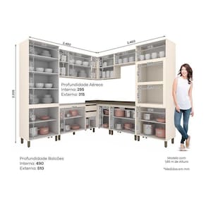 - Cristaleira de Cozinha Connect c/ 4 Portas (2 c/ Vidro) 71x51x220cm Off White - Henn - 1 unidades Dimensões: Alt: 52cm x Larg221cm x Comp/Profund:221cm