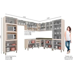 - Cristaleira de Cozinha Connect c/ 4 Portas (2 c/ Vidro) 71x51x220cm Off White - Henn - 1 unidades Dimensões: Alt: 52cm x Larg221cm x Comp/Profund:221cm