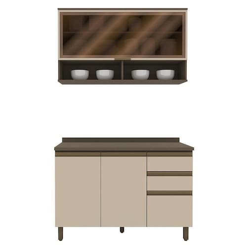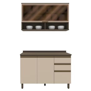 Cozinha Modulada Connect 2 Peças com Aéreo Basculante e Balcão 120cm - Móveis Henn