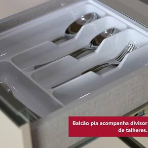 Funcionalidade e sofisticação em um só conjunto. Estruturada em MDF com pintura UV, essa cozinha traz portas com dobradiças metálicas e vidro reflecta champanhe na porta basculante com pistão a gás do aéreo 120cm, agregando elegância ao ambiente. O balcão 120cm conta com gavetas de corrediças telescópicas que podem ser montadas do lado direito ou esquerdo, divisor de talheres e tampo em MDP. Os puxadores em perfil de alumínio bronze e os pés com regulagem de altura garantem o toque final de estilo e praticidade. Ideal para cozinhas modernas e bem organizadas.