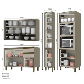 Cozinha Modulada Connect 4 Peças com Torre Quente 2 Fornos - Móveis Henn