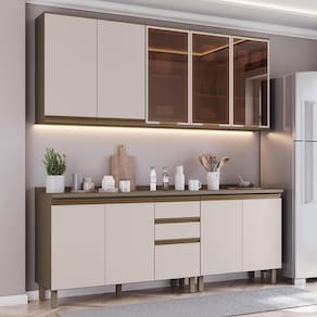 Cozinha Modulada Connect 5 Peças Aéreo 3 Portas com Vidro - Móveis Henn
