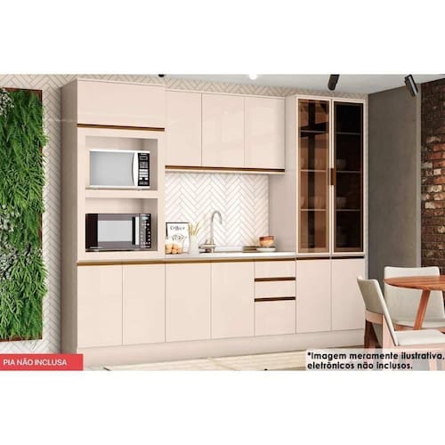 - Cristaleira de Cozinha Connect c/ 4 Portas (2 c/ Vidro) 71x51x220cm Off White - Henn - 1 unidades Dimensões: Alt: 52cm x Larg221cm x Comp/Profund:221cm
