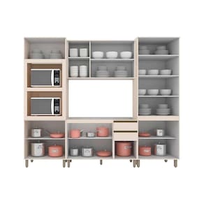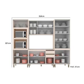 Cozinha Completa Connect 6 Peças (1Aéreo+1Balcão+2Paneleiros+2Complementos) C5P73 Off White - Henn Abaixo segue os produtos que compoem o KIT: - Paneleiro de Cozinha Connect Torre Quente c/ 3 Portas (1 Basculante) e 2 Nichos p/ Forno 71x220cm Off White - Henn - 1 unidades Dimensões: Alt: 221cm x Larg51cm x Comp/Profund:51cm