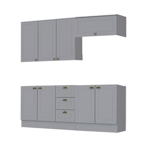 Cozinha Modulada Cooktop 4 Peças Com Tampo Henn Americana Cinza