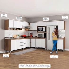 Cozinha Modulada Planejada de Canto Sabrina 252/294x202cm em MDP Branco Menu Moveis