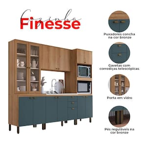 A cozinha modulada Finesse da THB Móveis é um conjunto de módulos de cozinha que permitem montar um ambiente completo e funcional com peças combináveis conforme seu espaço. Os módulos vêm em acabamento Capuccino com Azul, traçando um visual moderno, elegante e contemporâneo que combina com diversos estilos de decoração.